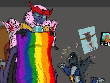 Basically starts with Soundwave and Seaspray getting a sort of mutual understanding post-war over their mutual care and concern for Ravage, despite being a little awkward towards each other at first they suddenly start looking forward to seeing each other as they look after Ravage. Then y'know they take Ravage out to certain parts of Cybertron together and y'know hanging out more, learning about each other and Seaspray telling more about Ravage's past and all sorts.