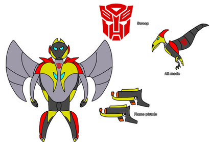 Swoop like the rest of the Dinobots received heavy damage protecting Autobots from Shockwave who knew how to counter his old experiments. This left them all on the brink of death, but, ever loyal to his friends Wheeljack managed to bring them along with him in life support chambers as the Ark left Cybertron.
