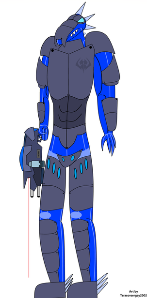 Has two shoulder-mounted cannons he can pull forwards to aim and fire at enemies.
