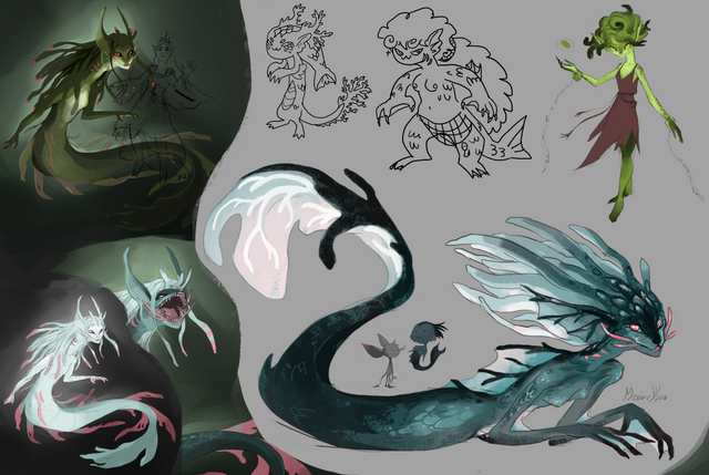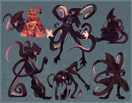 Soft reimage of my old OC. She's a combination of anomalocaris and a moth :}So! She's an assistant of a sea spider, who wants to get two star pieces (god's tears). And she got a little squid friend on a way (he's darkish red).
