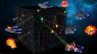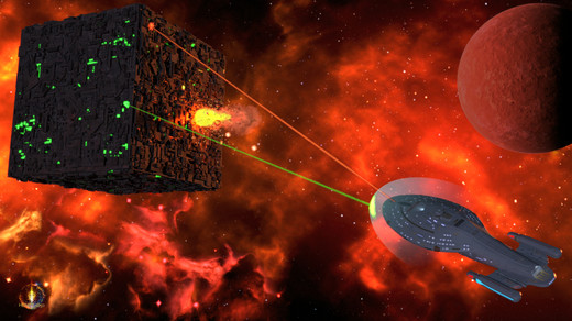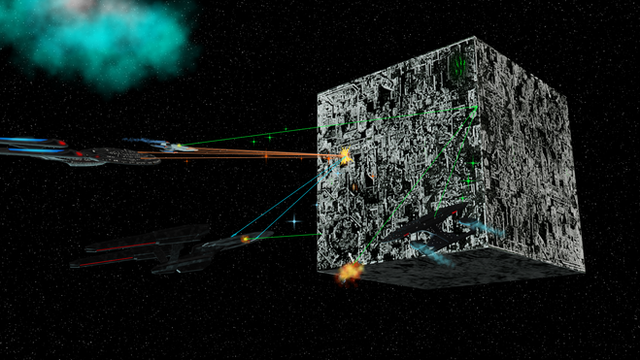 #scifi #alien #space #spaceship #startrek #battle #borg #cyborg #federation #locutus #nextgeneration #orbit #planet #romulan #tng #tractorbeam #warbird #borgcube #romulanempire