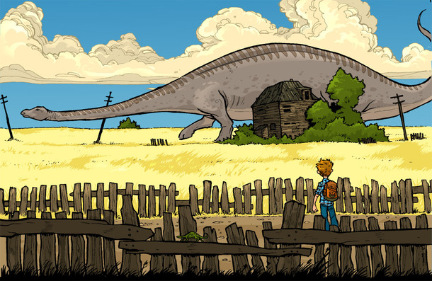 an adventure comic that's pretty silly and pretty serious, with dinosaurs thrown in for good