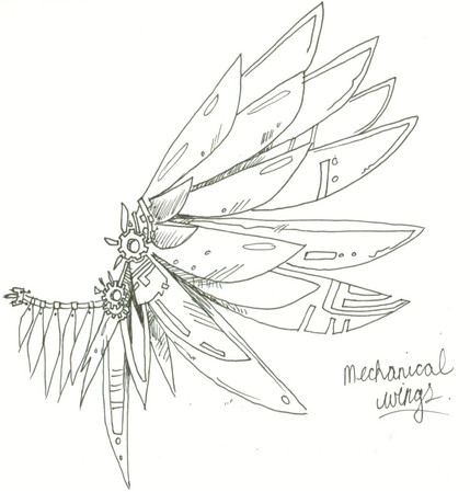 A nice plain, basic wing with thick feathers. It actually took quite a bit to make sure the feathers were just right. Right curve, size, placement, number, and the shape, oh the shape. To get that "just right" shape I was looking for... It was harder than it looks lol.I actually drew this as a sort of base for a, you guessed it, mechanical wing design.
