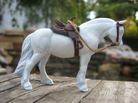 Izadora (mule) and Looks Like A Lady D (the palomino mare) is waiting for their rider to come back. Might have scouted another bear or something...Both Izadora and "Lady" is painted by Camilla Johansson. The western saddle is by Anna-Karin Larsson and the fab packingset is by Lydia Auten-Ernszt.