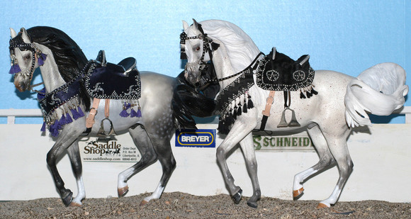 Jag har övervägande Schleich, men ommålade som jag själv jobbat på. Och några Breyer, bland annat en Tr Silver som är målad av Sophie Nordström till en läcker brun spotted blanket ^^