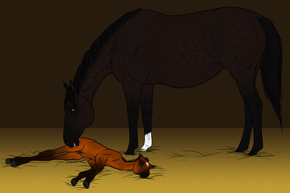 Hours had passed since they went out to the barn. It was a new day. The foaling itself had gone smoothly, no hitch at all even if it had looked like it as it started. The woman looked at the prone form in the stall and the small one that stood by the side of it. Benny had gone to phone the vet. Svea dried a tear off her cheek. It was never easy to lose a horse. She needed to get a nurse mare now. If Nee had her foal, she had let the foal in with her, since the mare produced milk like a cow. She heard footsteps and she turned around.