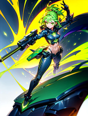 #digitalart #anime #animegirl #animedrawing #greenhair #guns #spacesuit #weapon
