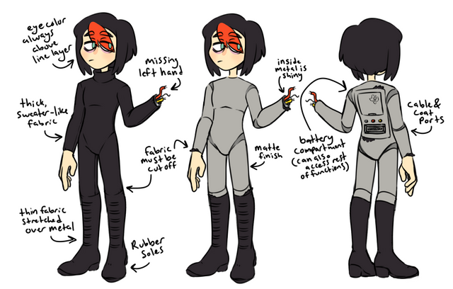 Alright that's all. That "power case" will be more clearly visible in future pics and has actually been drawn once already. I didn't feel like doing a back view tonight, i'm tired. Forgot to add that said case can store up to a full 24 hours' worth of usable power (Which is used through using the cannon & flight, mostly) and once low, can be charged externally back in the lab. Like, literally plugging it into an outlet for a while.