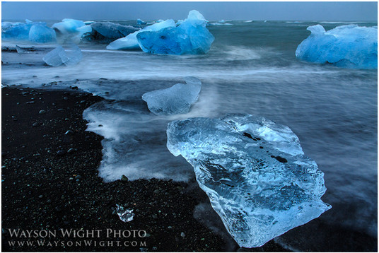 Jokulsarlon, IcelandThis is another image we took during a magical weekend at probably the best place on earth we have visited thus far for photography. After fishing up some ice blocks which were floating around close to the shore, we placed them for foreground interest where they weren't affected by movement. This was taken just on dusk. It is also the last image in the movie I have linked below which shows how much (or little) Marianne and manipulate our images for the final product: