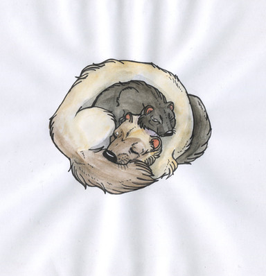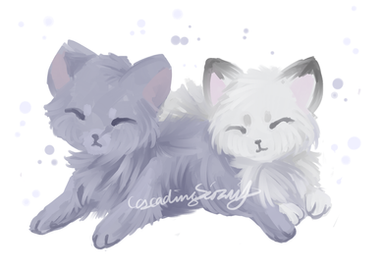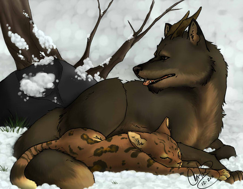 Sorry, had to draw this :>Way too cute to think these two enemies as pups sleeping next to each other.