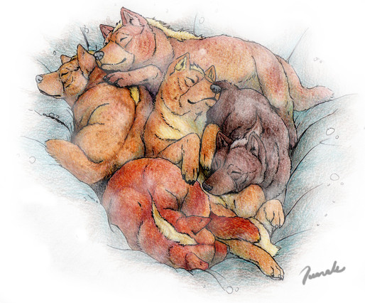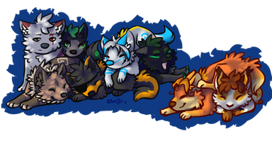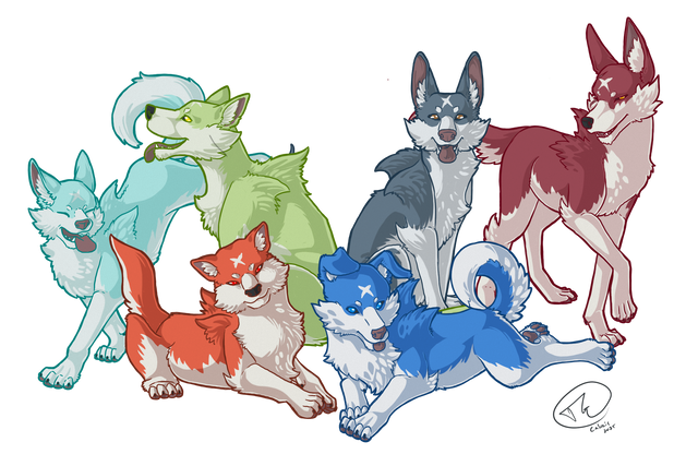 Mä tykkään ihan hurjasti sun traditöistä! Tässäkin on aivan ihanat noi värit, etenkin noi turkin varjostukset on aivan ihanat, etenkin Orionille sopii tollanen oranssihtava sävy sen urajiroon *v* Ja tää maalausmainen jälki on niin nätti, ei yhtään sottaisen näköinen. Also, rakastan näiden kaikkien asentoja niin paljon, etenkin Bella tuolla on niin söpö! Ihanaa työtä taas ♥