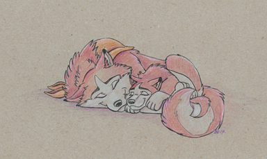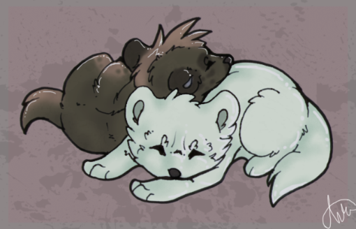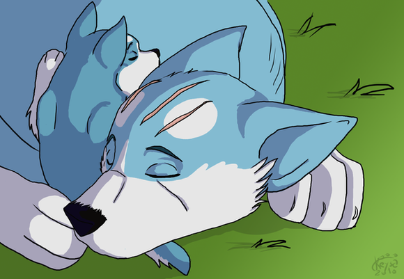 I love how my traditional art is always fine until I color it. I might do a digital version later since I'm not 100% satisfied with this >u>Anyways, here's Weed taking a nap with his four kids.