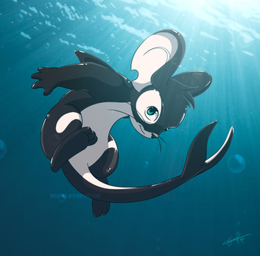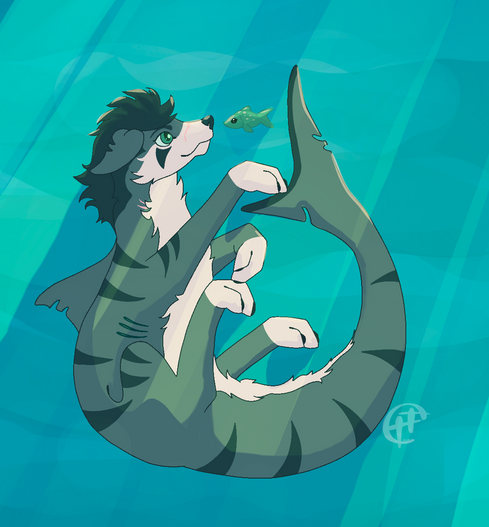 It's time to spam a sea creature-dogs.This is for whose orcadog Outa doesn't approve Blue poking her. I wasn't exactly sure about their size difference since they're mostly dogs but I checked that female orcas are 5-7m when blue shark males are 2-3m so I made Outa look a bit bigger.