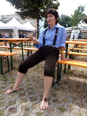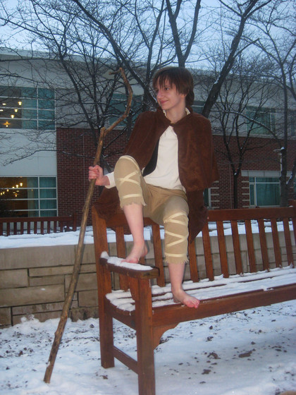 Photo of my Pippin cosplay from a recent photoshoot.The feet were made using the tutorial found in my gallery.