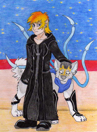 On Gaia I help run a pet shop with iLoveTheRain, that sell these kitty-like creatures she created called "Cait". Anywho, recently we had a huge festival with games and sales and give-aways and she also did up a bunch of KH2 Cosplay Cait linearts for me to colour and auction off.And since a Roxas and Axel cait were missing from her list I asked if I could have a go at doing them up myself. And here they are. Rather chuffed with how they came out - Roxas' hair was alot harder than I thought! My only miff is that I drew Axel at about half the size as Roxas in the original artwork so when I shrunk him here he's not as smooth as Roxas. Works fine for the size required on Gaia sigs, but not when I only shrink them this much. Oh well...