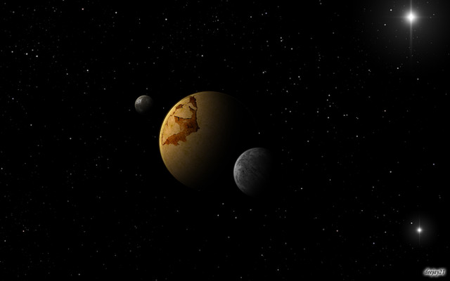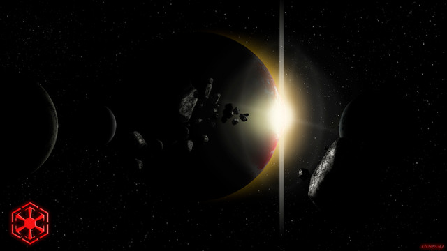 Epsilon Canaris is a failed planetary system, nothing but asteroids orbit this once promising system.The large asteroid in the foreground was greated using "Grand Designer"