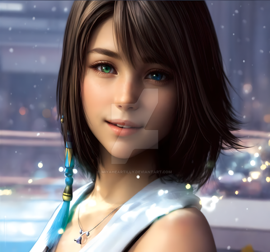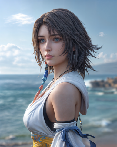 This is the culmination of two weeks of trying to get a fairly decent "Yuna" from the first FFX game, 10 different prompts and over 25 iterations. Definitely worth it.Update: I have updated the image to show that Yuna hasΒ Heterochromia, one green eye and one blue (thanks to XgamerRR for reminding me).