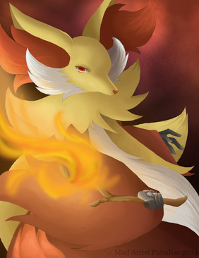 So, I'm more pumped for Pokemon: X and Y than I have been for a Pokemon game in a long time. My starter of choice? A Fox, of course. One that evolves into an awesome psychic-fire type (because mewtwo and ninetails needed to have a kid). So meet Delphox (after the Oracle of Delphi!). My first bit of fan-art in a while, but hey, maybe I'll do more.More of my work at www.inklingart.net !