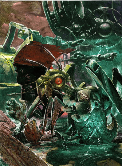 Uhbuh. I'm kind of speechless this is such a cool idea. I love its six tiny arms and mammalian skull. I am also kind of envious of your ability to draw da machines.