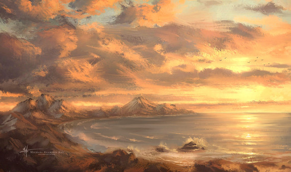 #2d #clouds #digitalart #digitalpainting #distance #nature #ocean #sea #sky #sun #sunset #view #artstudy #art #artwork #challenge #landscape #mountains #dailydrawing