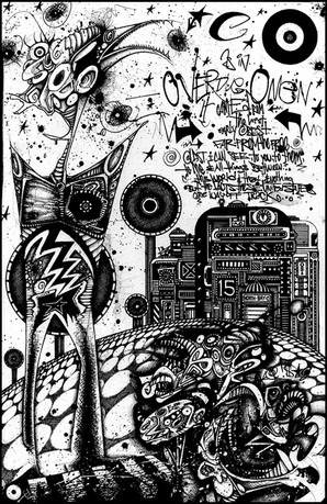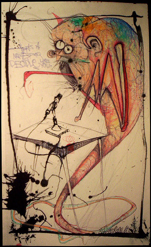 totally awesome! i love the combined styles.. i dont know which i like the best the shading on the man or the writing style of the words around it.. .