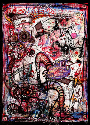 bad ass bro i come by to check on u and i find this nugget of joy. it's good to see both of ur styles really starting to merge and become one massive style. the bright colors and the awesome bic sketches. what can i say man, really good stuff. the border stands out so much from the sketch, giving it some nice depth.