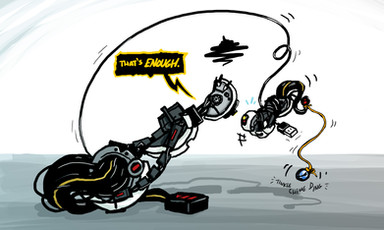 I wish someone would make that video. It would be so hilariously messed up and awesome at the same time. Hmph, hindsight tells me I should've given her a Companion Cube plushie for a toy. Oops. That's for the next piece then I guess!