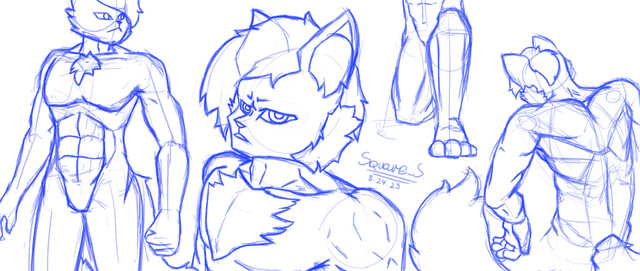So I've just returned to my cat, I've also seen some pics of cats and furry cats too to be able to observe the difference on their traits from dogs: ears are sharper, rouded face, more delicate noses...Adding to that, I've told I wanted him more bara-ed lol So that's how things haven been going so far...