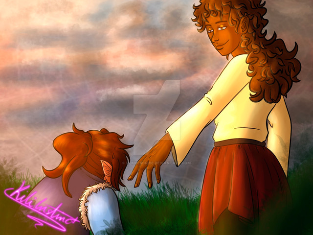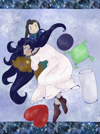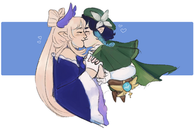 Who let that little snowy princess out of the palace? Now she's off to explore the edges of Teyvat and back!Just an older doodle of my most beloved Snezhnayan princess Nadezhda and her darling fairy friend Bebal