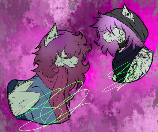 Re-entering the art world with this piece, it's nice to be back that's for sure ^^. Starting with a pair of friends being goofballsGreen noodle (Yearn) belongs to me