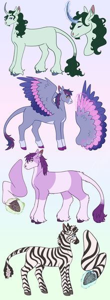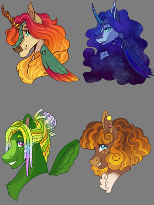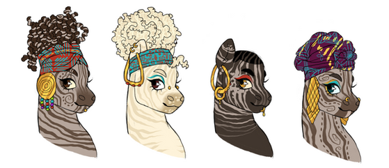 Some zebra love! They're all just so pretty!!Top left is Honeypetal Tea, my Zecora kiddo, the sweetest and gentlest darling around. The right side is Kavai, a strong magic user and knows more than she'll tell you. And the bottom left is Fayola, Harvest's mom, a sweet woman and the head of the herd.
