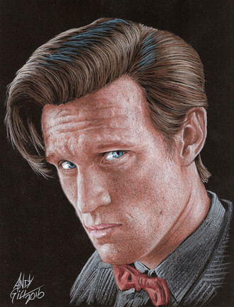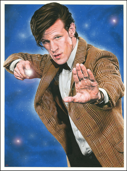 11x17 pencil on bristol with digital finishes.My Matt Smith - Doctor Who portrait, the FanX Exclusive version - this print will be signed and numbered and limited to only 50 prints and available only at Salt Lake Comic Con's FanX convention at the end of January. After that, the Black and White version will be available at my subsequent appearances. You can pre-order the print at www.deeplydapper.com and pick it up at the show.