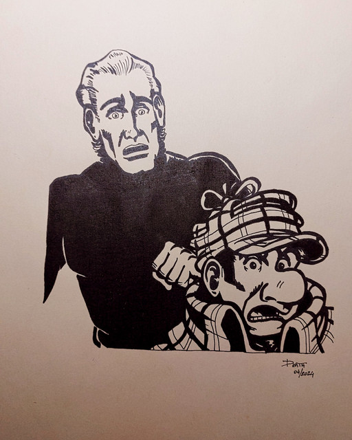 Art from my DapperKins Horror Abecedarium.Leatherface adjusts his uncomfortable but stylish tie.