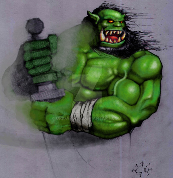 One of the most terrible enchantment is without doubt the chlorophyllisation.. Imagine that your body is turning into some kind of plant, with roots staved in the ground. After few seconds, half of your body is now a tree, with all problems that means: your are stuck in place...This pic present a poor orc cursed by this terrible spell...