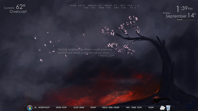 This work is Mostly inspired by the wallpaper (it is included) I was up late and wanted to do something simpleThe Notes, weather and time are all Simplesentence 2 by White-Baron ~ [link]