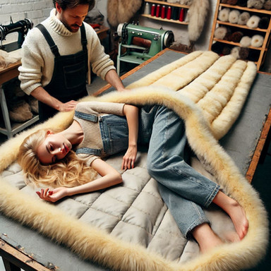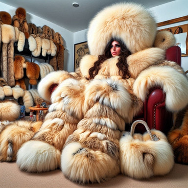 "Mmmm excellent" she quietly says to herself watching the coat float and flow around Diana like a queen. The collar rubbing her cheeks gently with every bounce and foot fall. "Stand here" pointing to the elevated platform in front of a triad of full length mirrors catching her radiance in every angle. She looks her up and over, around. Pleased with the fit and look. Hugging her waist gently from behind burying her own face in the fur shoulder and breathing in the intoxicating sent, her lower regions become moist. "Mmmm beautiful" she states seductively "Don't you think?" Softly blowing pink mist into Diana's nose.