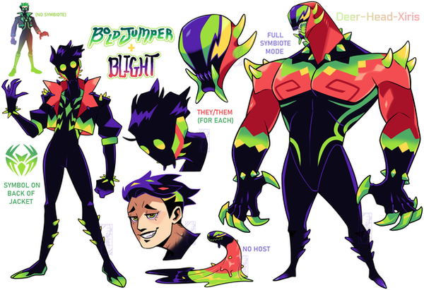 I know I said I wasn't gonna make a Symbiote OC to pair with Bold but then I got the idea for a watermelon colored symbiote, and here we are. This is Blight, they're a big nasty and I love them. May or may not taste like watermelon. (they/them pronouns!)here's their playlist too ♥♥♥ www.youtube.com/playlist?list=…