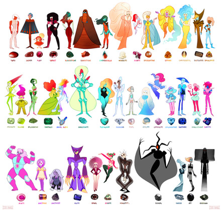 The master-list for (almost) every gem I've ever made, fusions and all. I say almost because certain gems have been designed but are secret until they are revealed in comics and such.Many of these gems aren't in my gallery, mostly because I don't post design commissions onto dA (I post them on my tumblr tho)