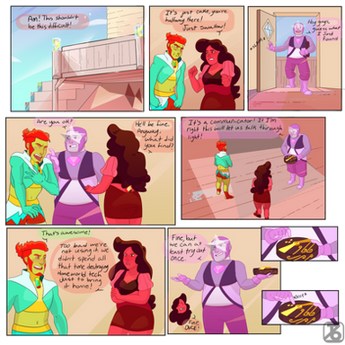 Neat teleport effect there! These are so fun to view. This style really suits you, and I'm curious how it will affect other artworks you do of different themes/characters. :3 Something random I have to ask, since I'm still unfamiliar with everything Steven Universe: Gems choose their own gender? Or are male gems special in some way since there appear to be fewer of them?