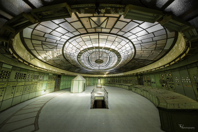 #abandoned #architecture #budapest #circular #control #derelict #film #fisheye #hungary #interior #movie #oval #power #room #station
