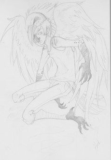 Mmm. I mentioned in a previous journal that I would be submitting some sketches from my book.Well, this is one from a couple weeks back. During my period of procrastination, my sketchbook got wet and so now half the pages are warped, including this one ( I fiddled in PS a bit so it's not so easy to tell >.>' ) and so I decided to scan it before something else got to it.