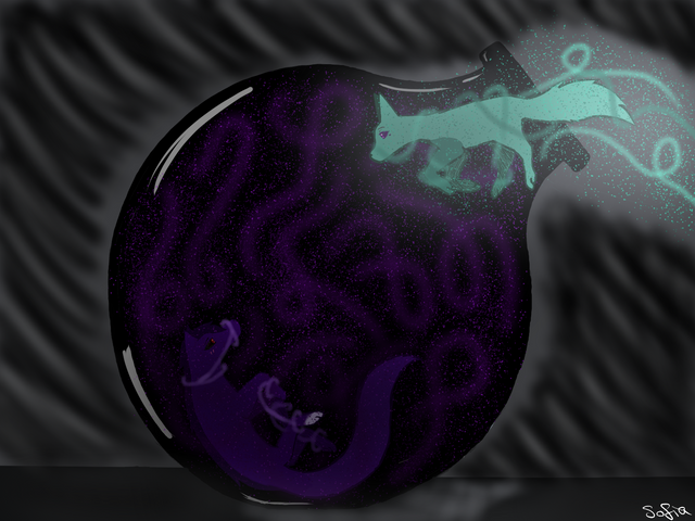 Oh my this isn't right. *grabs the bottle and opens it up* come on out cutie.