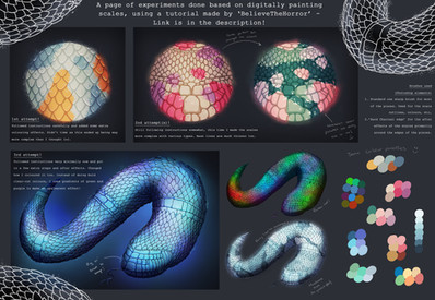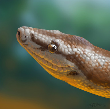 A quick lil edit β₯ Snake markings aren't smooth lines and follows the textures of the scales. After the basic highlights(basically only highlighting the top-most scales to give texture) I put my brush on color dodge and pushed the color on the light-affected areas. After that I color selected black and set my brush to overlay and did light light strokesΒ to deepen the colors. On the face I just used the normal brush with the dark brown and touched up the black marking on the face since it turned grey. Hopefully that helps! β₯β₯
