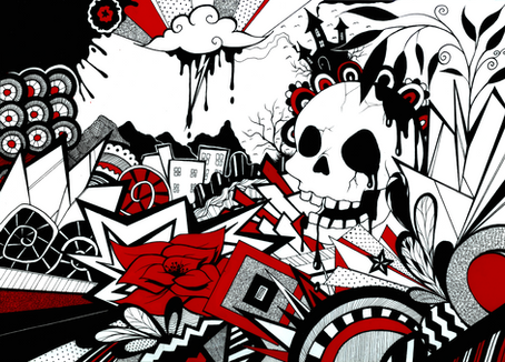 T-shirt design i did for myself. Used Adobe illustrator CS2!Called BOOM and is a collections of stuff from my life and mind... oooohhh...