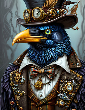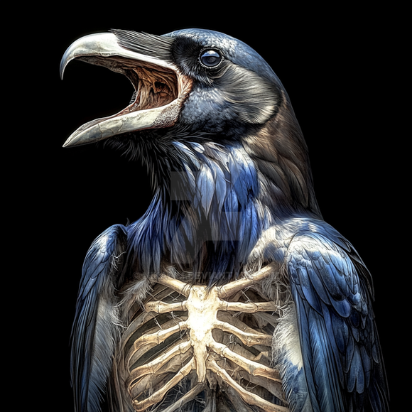 #animal #bird #digitalart #skull #magic #horror #spooky #animalart #ai #crow #illustration #insides #skeleton #tophat #ai_generated_art