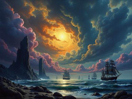 #epic #sky #sea #digitalart #fantasyart #digitalpainting #drama #boat #ai #baroque #digital #illustration #magic #portrait #scenic #traditionalart #watercolor #art #ai_generated_art