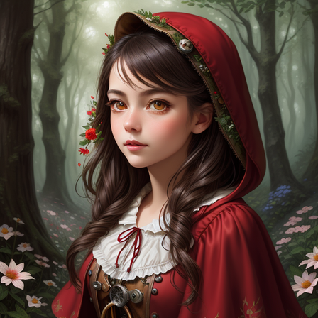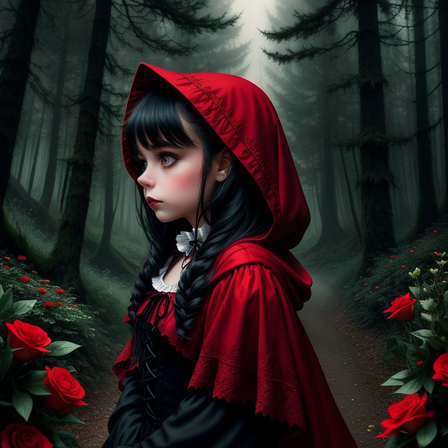 #ai #digitalillustration #fairytale #fantasyart #gothicgirl #illustration #photorealism #redridinghood #fairytailfanart #aitools