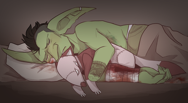In relation to this: neomi-trix.deviantart.com/art/…Sil stitched him up, put him to bed and joined him when he passed out cause she was worried and felt guilty.