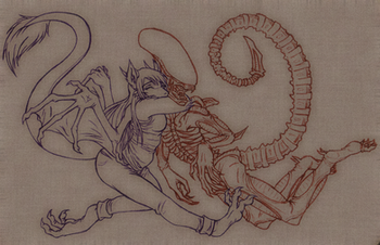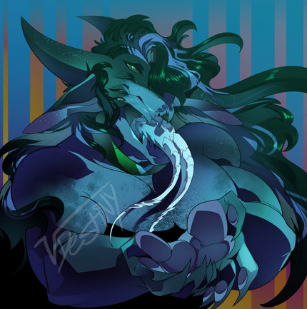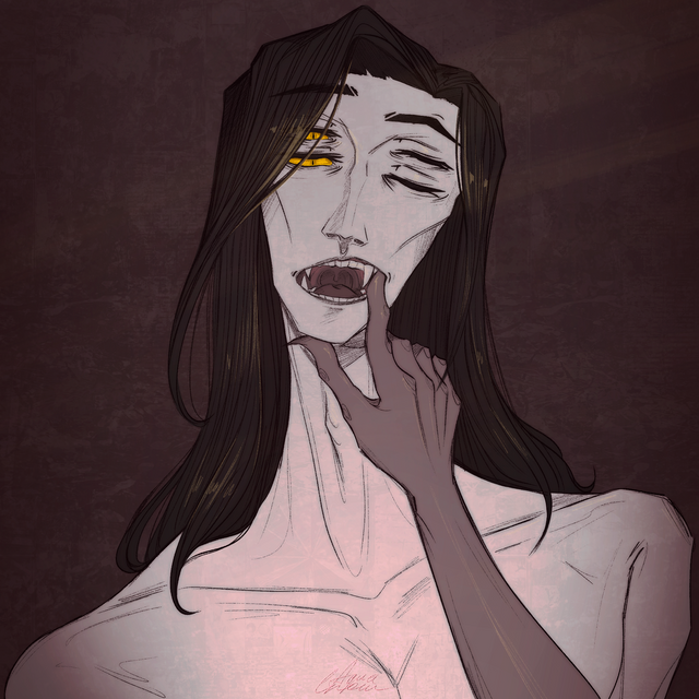 something i did last month between comms while working on the mermay pic.Auliander and I decided mer Auli would have fangs and a LONG tongue.. eheuehueh .. :3