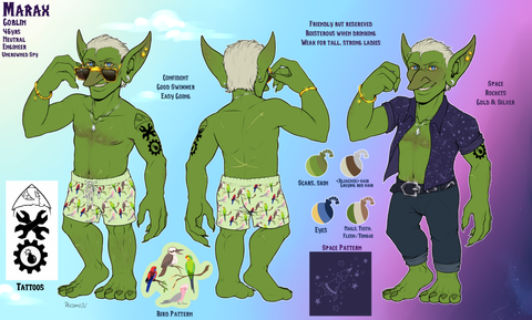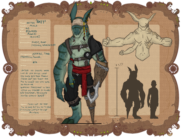 This ref is mostly just to show his scars n bio, will post a clothing one when I finish it.Done between commissions, I swear.. ;>.>